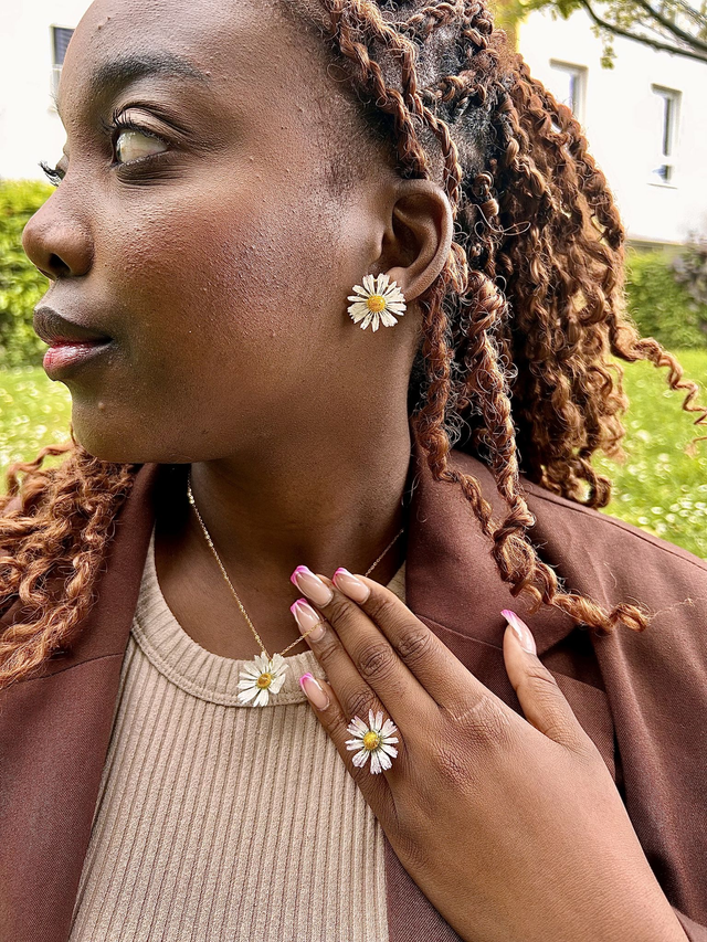 Avec ou sans oreilles percĂ©es, fleurissez fleurmidablement đ comme une fleur au soleilđ avec nos boucles d'oreilles en vĂ©ritables fleurs sĂ©chĂ©es de PĂąquerettes . Attribut de la dĂ©esse ArtĂ©mis symbole de virginitĂ© dans la mythologie grecque, la fleur de pĂąquerette, ornĂ©e de ses pĂ©tales blanches immaculĂ©es, est une fleur associĂ©e Ă la puretĂ© et Ă l'innocence đ.